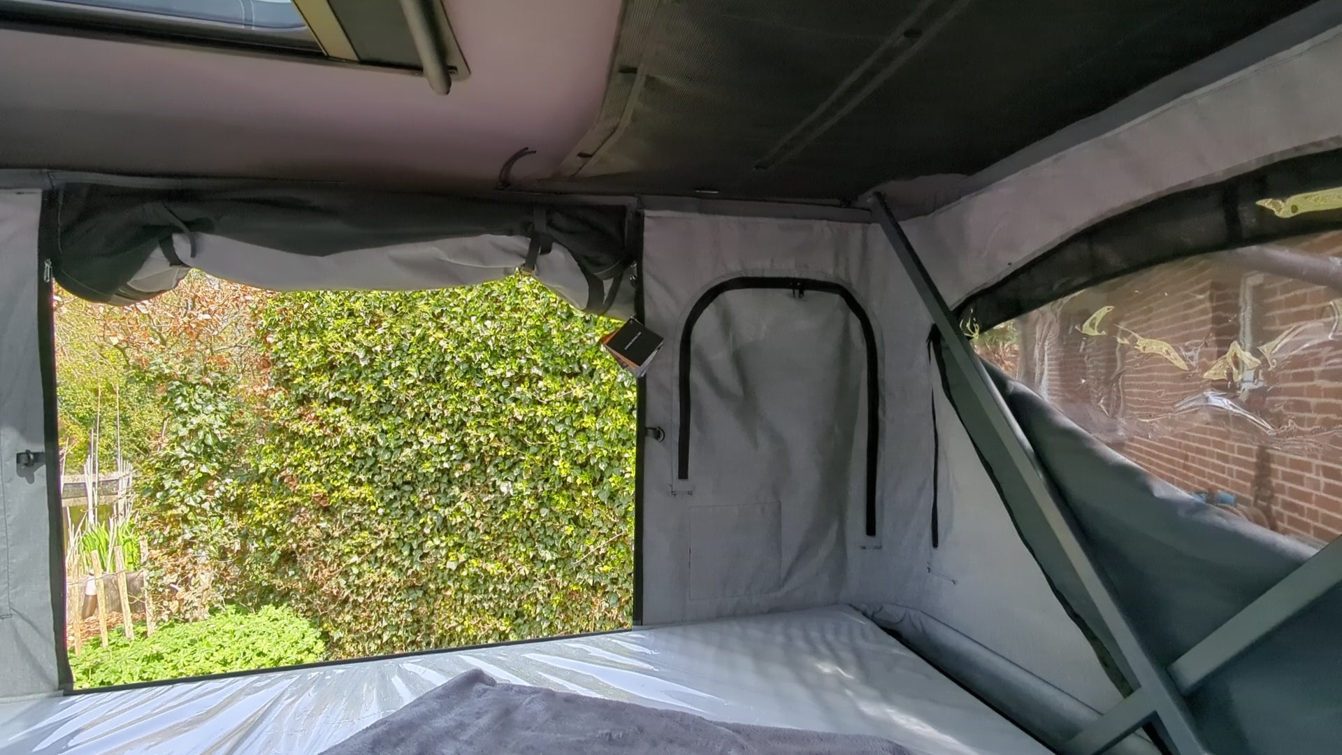 Die 360° Panorama - Rundumsicht ermöglicht dir den direkten Kontakt mit der Natur. Das innovative "black edition" Fiberglas-Moskitonetz ist sehr dicht und verdunkelnd. Darüber hinaus schützt es dich vor neugierigen Blicken und gewährleistet eine erforderte Privatsphäre. Angenehme Belüftung & ein hervorragendes Raumklima bietet dir das neue Dachfenster das komplett oder nur teilweise geöffnet werden kann. Zusätzlich ist es abdunkelbar für die Nacht. Der Aufbau mit der Kurbel aus der Serie Grand Tour ermöglicht dir ein schnelles Auf u. Abbau des Dachzeltes.