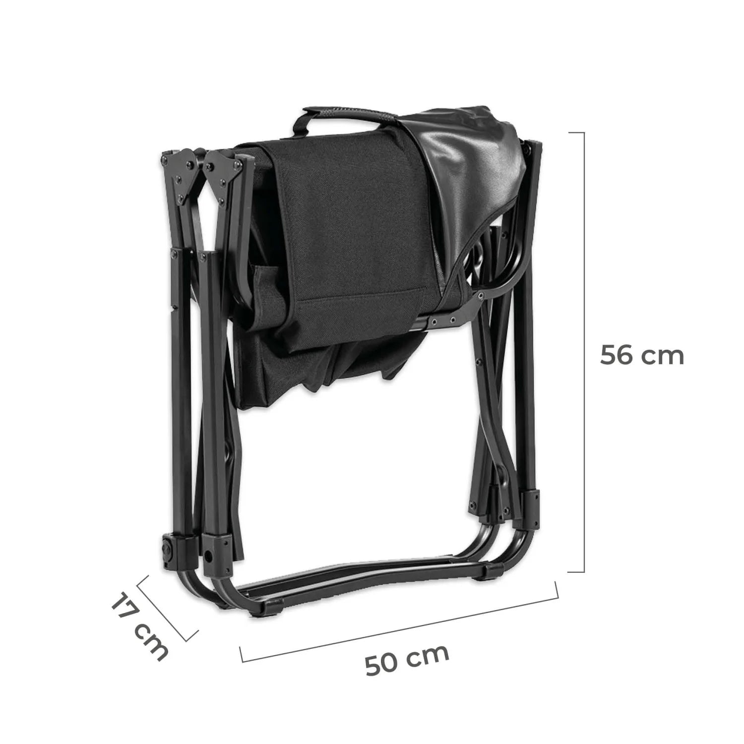 Der klappbare und bequeme Campingstuhl DIREKTOR lässt sich mühelos in nur drei Schritten auf- und abbauen. Er bietet zusätzliche praktische Funktionen wie integrierte Seitentaschen für Smartphones und andere kleine Gegenstände.