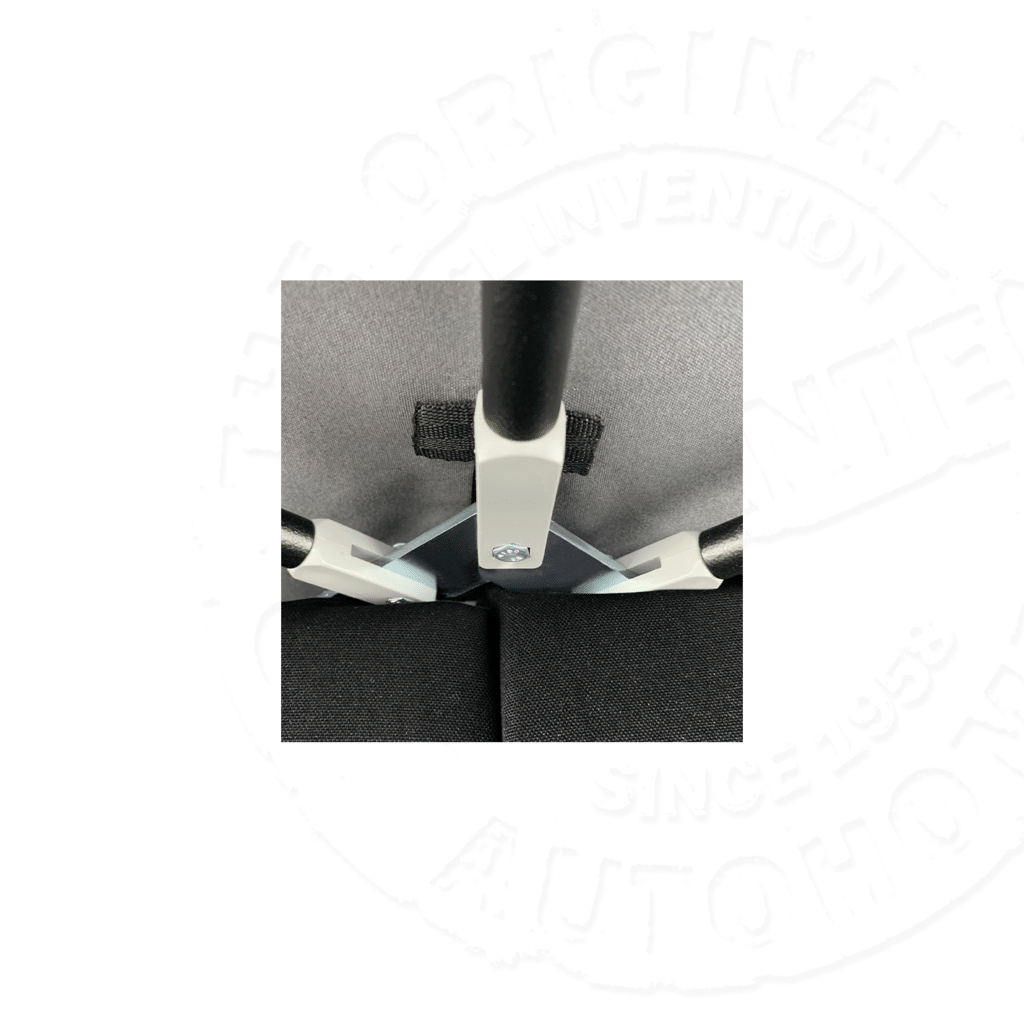 Ein universelles, schnelles und sicheres System, das auf üblichen Grundträgern (nicht im Lieferumfang) die Zeltbefestigung in der gewünschten Position einfach und problemlos ermöglicht.